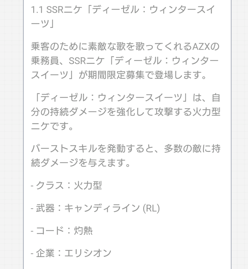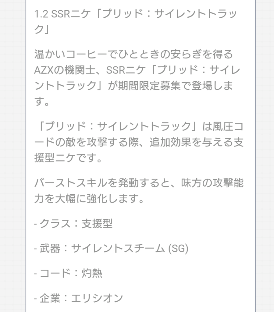 スポンサーリンク ◤12月4日11時からのバージョンアップメンテナンス予告!◢ 新ニケの一部性能、ブレッディの新コス確定等 イベント X LINE コピー コメント 2025.12.01 【バージョンアップメンテナンスのお知らせ】下記日時にてメンテナンス及びバージョンアップを行います。更新内容は添付URLよりご確認ください。◆実施日時12月4日(木)11:00~18:00◆詳細https://t.co/My2pFmA2Id※メンテナンス補填については本アカウントよりお知らせいたします。… pic.twitter.com/cgl6iYjImE— 【公式】勝利の女神:NIKKE (@NIKKE_japan) December 1, 2025 ホビーサクラ(Hobby Sakura) 勝利の女神:NIKKE 紅蓮:レーサーズハイ 1/10スケール 約220mm PVC&ABS製 塗装済み完成品フィギュア created by Rinker ホビーサクラ(Hobby Sakura) ¥7,837 (2025/12/01 07:33:19時点 Amazon調べ-詳細) Amazon 楽天市場 管理人 ディーゼル、本当に全体持続ダメージ(歌)だ… 関連