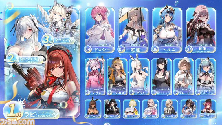 人気投票が大体4月前後なんで投票直近のキャラが割と上位に来るのはある