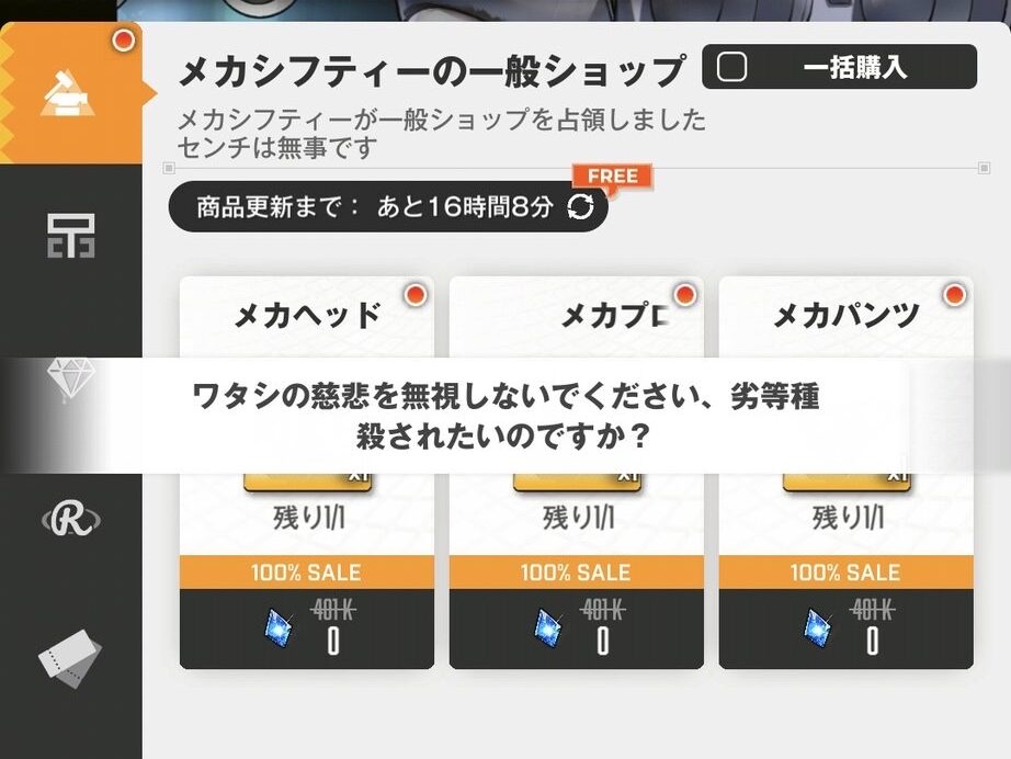 ショップで受け取らずに更新すると専用メッセージがありますよ劣等種