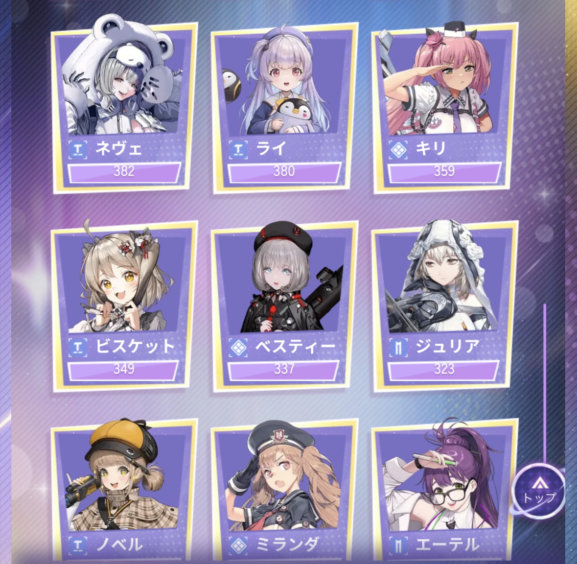 トーブやミランダのようなレイド常連で強いニケでも人気投票ではぜんぜんだめだ