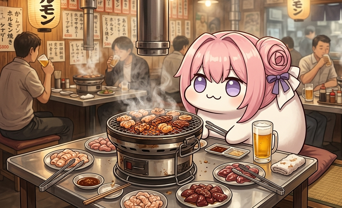 DOROはアナタと一緒にホルモン焼きの店に来ています(AI君生成)